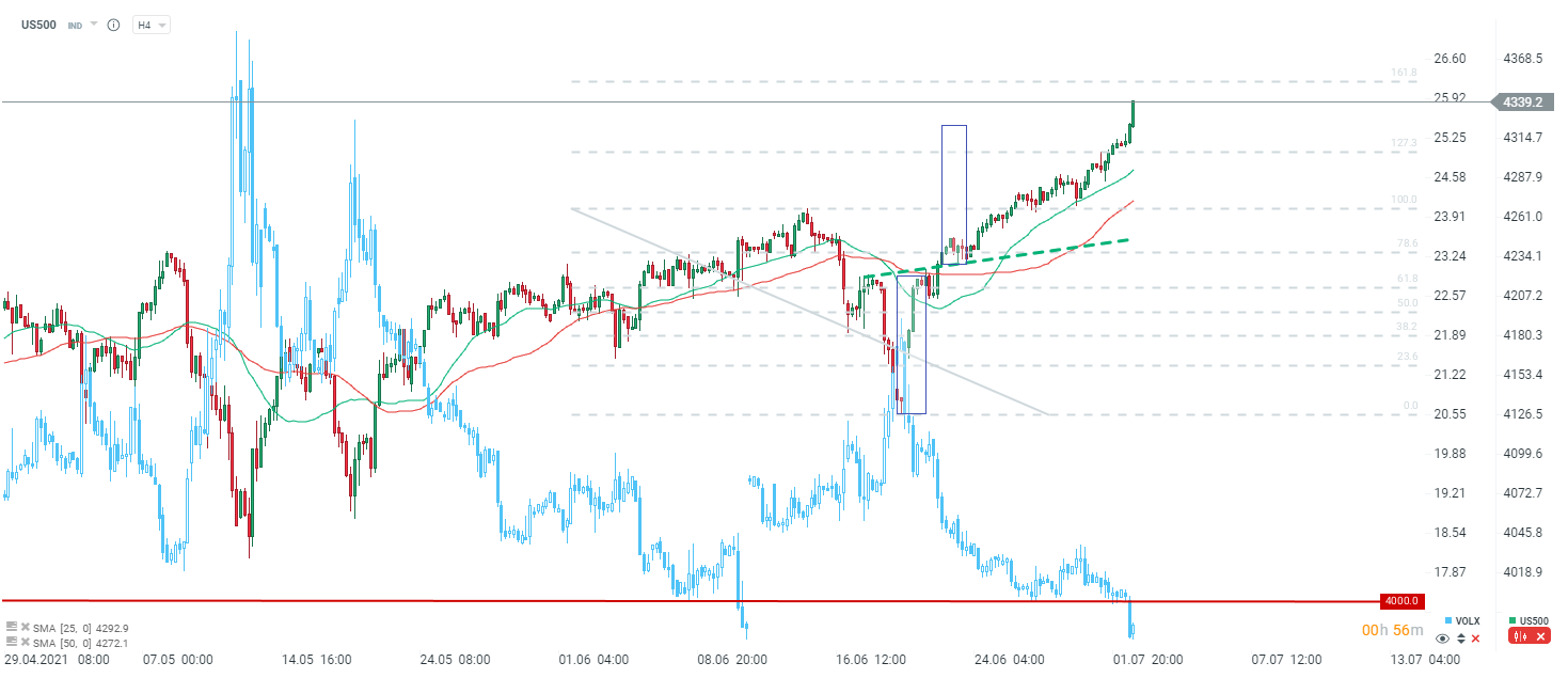 US500 kontynuuje wzrosty. Źródło: xStation5