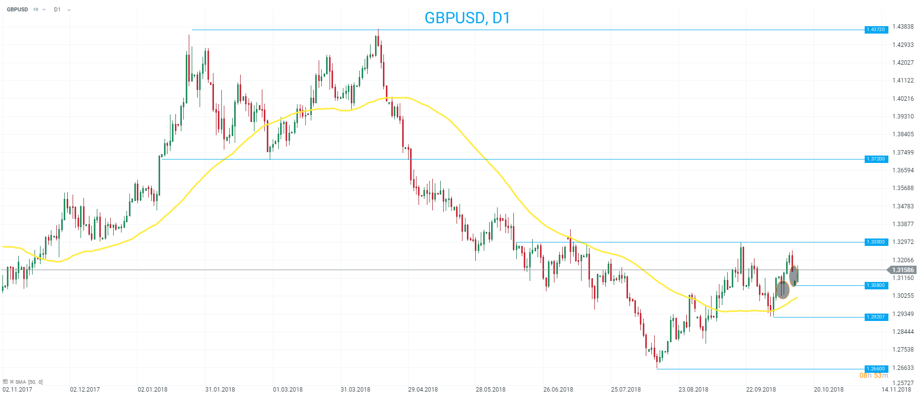 GBPUSD spadła przez weekend po negatywnych informacjach odnośnie Brexitu, jednak para szybko odrobiła straty pomimo przypuszczalnie rosnącego prawdopodobieństwa braku porozumienia w sprawie Brexitu. Źródło: xStation5.
