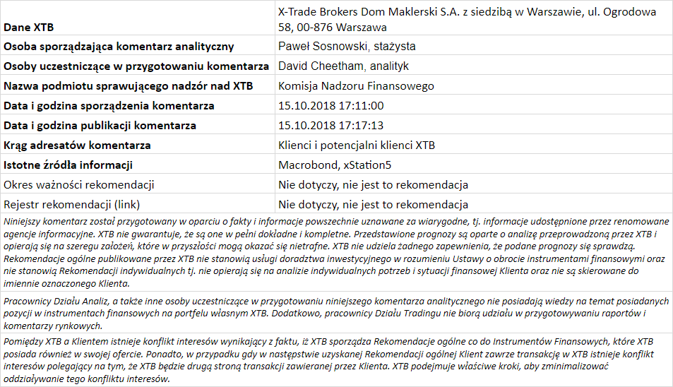 Ta publikacja handlowa jest informacyjna i edukacyjna. Nie jest rekomendacją inwestycyjną ani informacją rekomendującą lub sugerującą strategię inwestycyjną. W materiale nie sugerujemy żadnej strategii inwestycyjnej ani nie świadczymy usługi doradztwa inwestycyjnego. Materiał nie uwzględnia indywidualnej sytuacji finansowej, potrzeb i celów inwestycyjnych klienta. Nie jest też ofertą sprzedaży ani subskrypcji. Nie jest zaproszeniem do nabycia, reklamą ani promocją jakichkolwiek instrumentów finansowych. Publikację handlową przygotowaliśmy starannie i obiektywnie. Przedstawiamy stan faktyczny znany autorom w chwili tworzenia dokumentu. Nie umieszczamy w nim żadnych elementów oceniających. Informacje i badania oparte na historycznych danych lub wynikach oraz prognozy nie stanowią pewnego wskaźnika na przyszłość. Nie odpowiadamy za Twoje działania lub zaniechania, zwłaszcza za to, że zdecydujesz się nabyć lub zbyć instrumenty finansowe na podstawie informacji z tej publikacji handlowej. Nie odpowiadamy też za szkody, które mogą wynikać z bezpośredniego czy też pośredniego wykorzystania tych informacji. Inwestowanie jest ryzykowne. Inwestuj odpowiedzialnie.