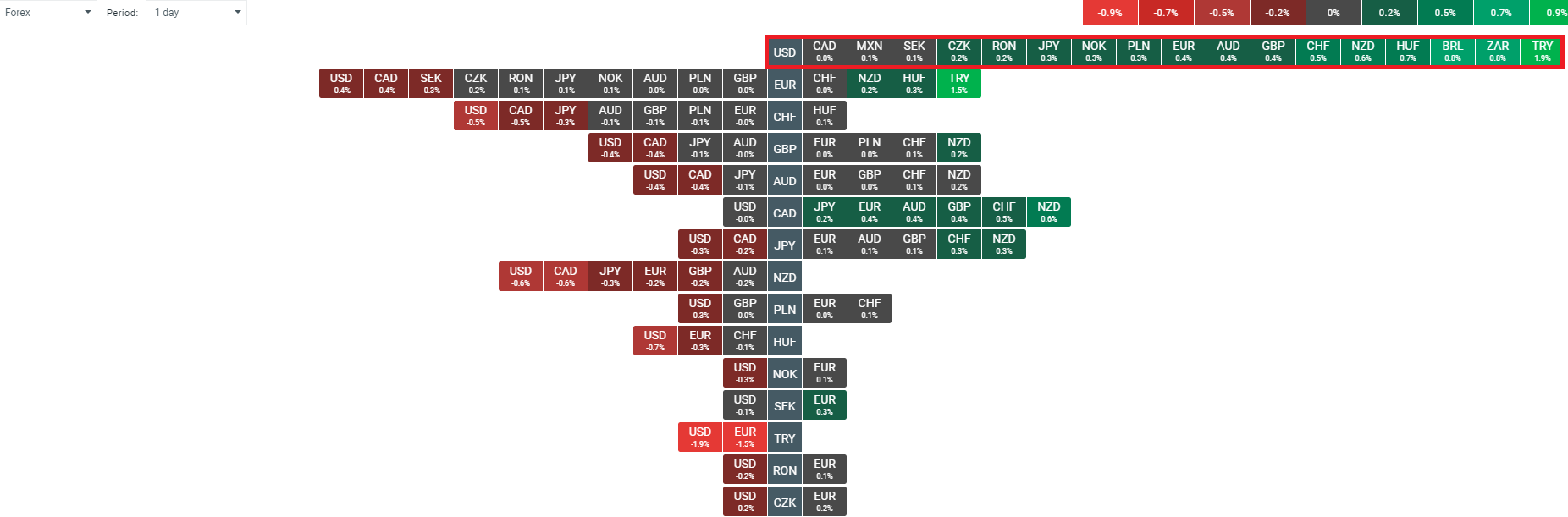 Dolar pozostaje osłabiony wobec ważniejszych walut, a w szczególności wobec walut gospodarek wschodzących. Źródło: xStation5.