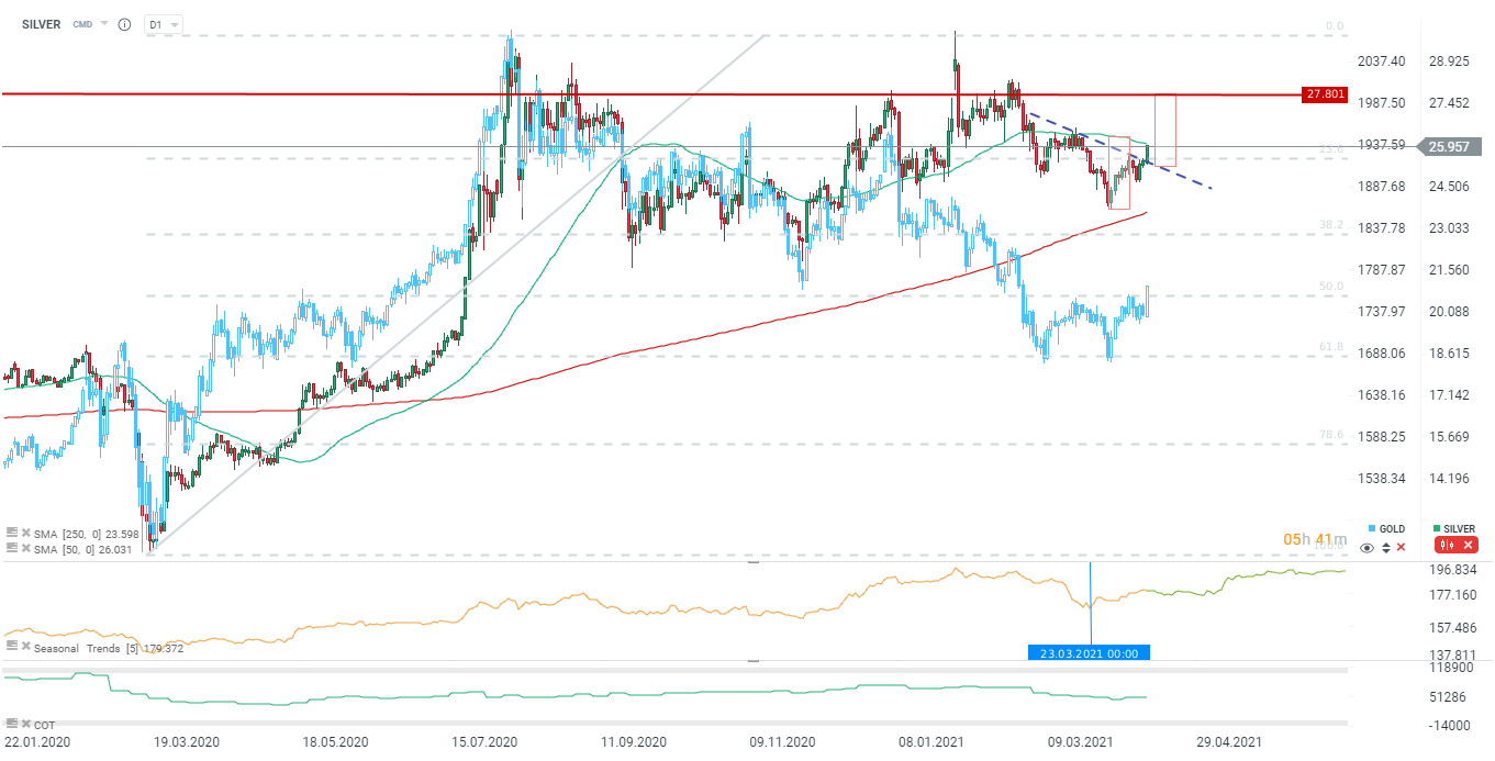 Srebro zyskuje i realizuje formację oRGR. Źródło: xStation5