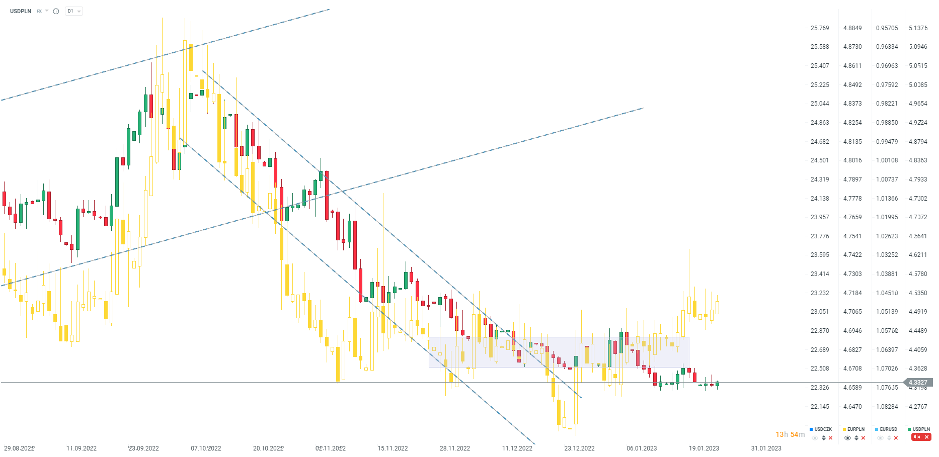 USDPLN minimalnie w górę, choć sam ruch na złotym jest dzisiaj minimalny. Źródło: xStation5