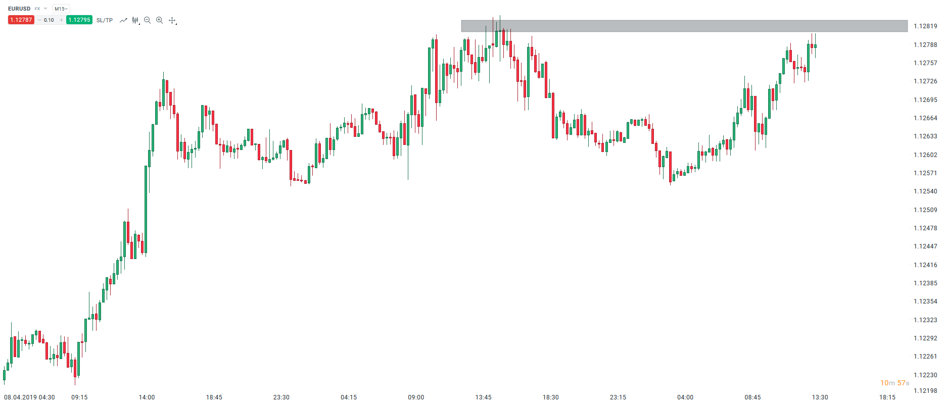 EURUSD praktycznie bez zmian po komunikacie, obecnie czekamy na konferencję Mario Draghiego. Źródło: xStation5.