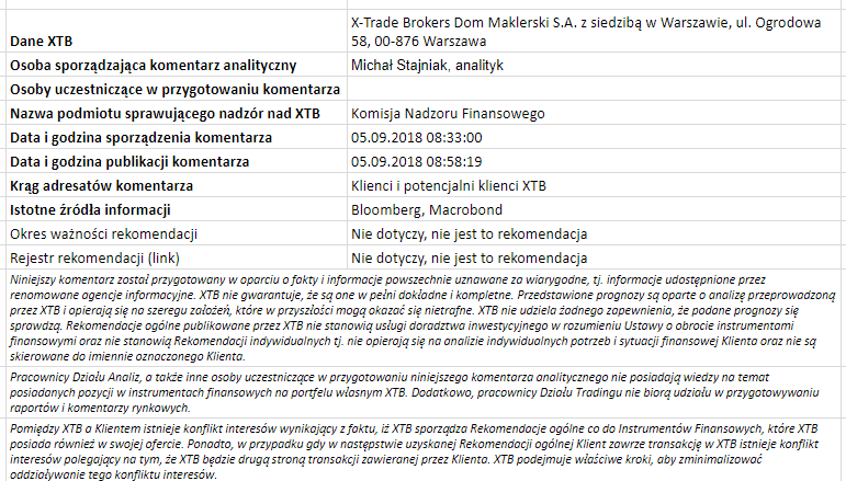 Dzisiaj ma dojść do wznowienia rozmów w sprawie porozumienia NAFTA, chociaż inwestorzy powinni wziąć pod uwagę kilka scenariuszy, biorąc pod uwagę wczorajsze uwagi ze strony kanadyjksiego premiera Justina Trudeau. Wskazał on, że jego kraj nie będzie chciał podpisać umowy, która nie będzie pozytywna dla gospodarki. Wskazał on, że protekcja kanadyjskiego sektora kulturalnego i mediowego musi zostać utrzymana. Wobec takich uwag nie wydaje się, że osiągnięcie porozumienia będzie łatwe i przyjemne.