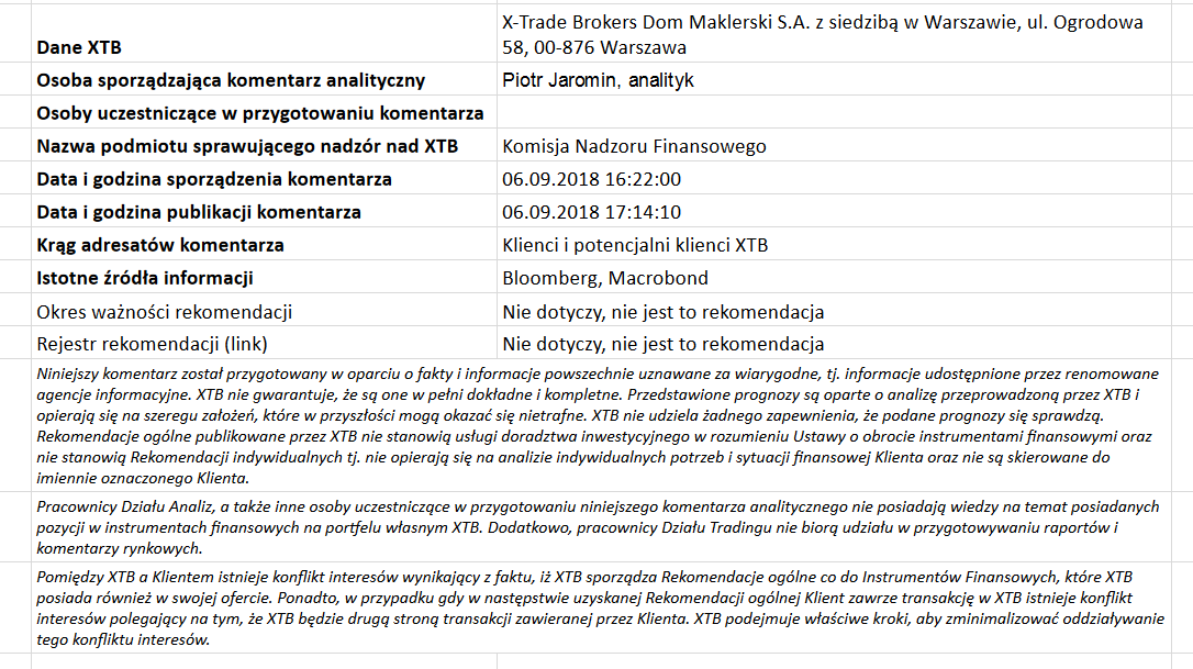 Ta publikacja handlowa jest informacyjna i edukacyjna. Nie jest rekomendacją inwestycyjną ani informacją rekomendującą lub sugerującą strategię inwestycyjną. W materiale nie sugerujemy żadnej strategii inwestycyjnej ani nie świadczymy usługi doradztwa inwestycyjnego. Materiał nie uwzględnia indywidualnej sytuacji finansowej, potrzeb i celów inwestycyjnych klienta. Nie jest też ofertą sprzedaży ani subskrypcji. Nie jest zaproszeniem do nabycia, reklamą ani promocją jakichkolwiek instrumentów finansowych. Publikację handlową przygotowaliśmy starannie i obiektywnie. Przedstawiamy stan faktyczny znany autorom w chwili tworzenia dokumentu. Nie umieszczamy w nim żadnych elementów oceniających. Informacje i badania oparte na historycznych danych lub wynikach oraz prognozy nie stanowią pewnego wskaźnika na przyszłość. Nie odpowiadamy za Twoje działania lub zaniechania, zwłaszcza za to, że zdecydujesz się nabyć lub zbyć instrumenty finansowe na podstawie informacji z tej publikacji handlowej. Nie odpowiadamy też za szkody, które mogą wynikać z bezpośredniego czy też pośredniego wykorzystania tych informacji. Inwestowanie jest ryzykowne. Inwestuj odpowiedzialnie.
