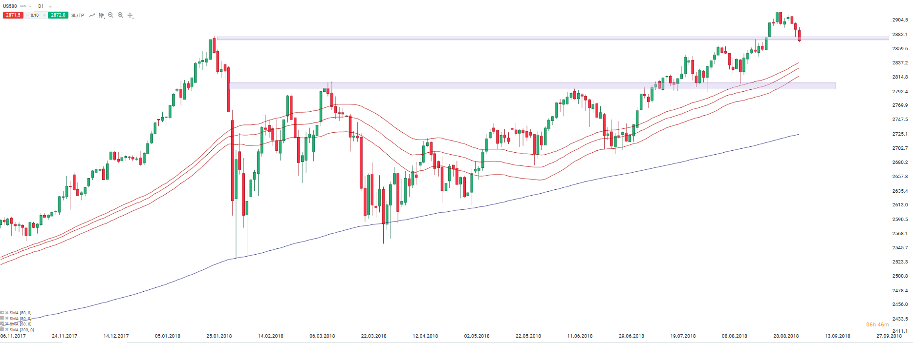S&P500 (US500) w kierunku wsparcia