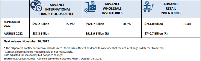 U.S. Census Bureau ogłosiło szacowane statystyki dot. handlu międzynarodowego, zapasów hurtowych i detalicznych za wrzesień 2022 r:
