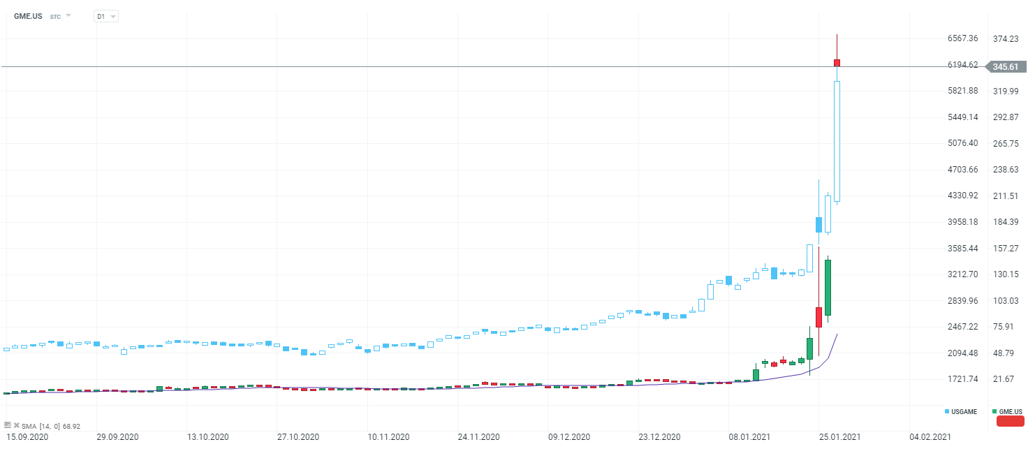 Hossa na Gamestop (GME.US) pchęła cały sektor gamingowy mocno w górę. Źródło: xStation5