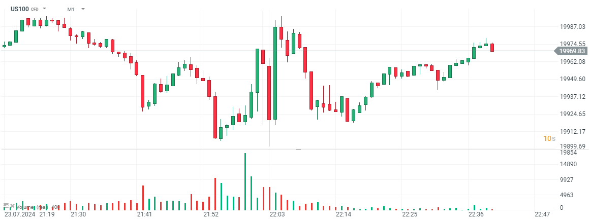 Spółki Alphabet (GOOGL.US) i Tesli (TSLA.US) przedstawiły wyniki za II kwartał roku, po zamknięciu sesji na Wall Street. Po rozczarowującym spadku zysków akcje Tesli w handlu posesyjnym tracą prawie 4%, a Alphabet zyskuje prawie 3% po przedstawieniu wyników, które przekroczyły szacunki Wall Street. W efekcie kontrakty futures na Nasdaq 100 (US100) cofnęły się