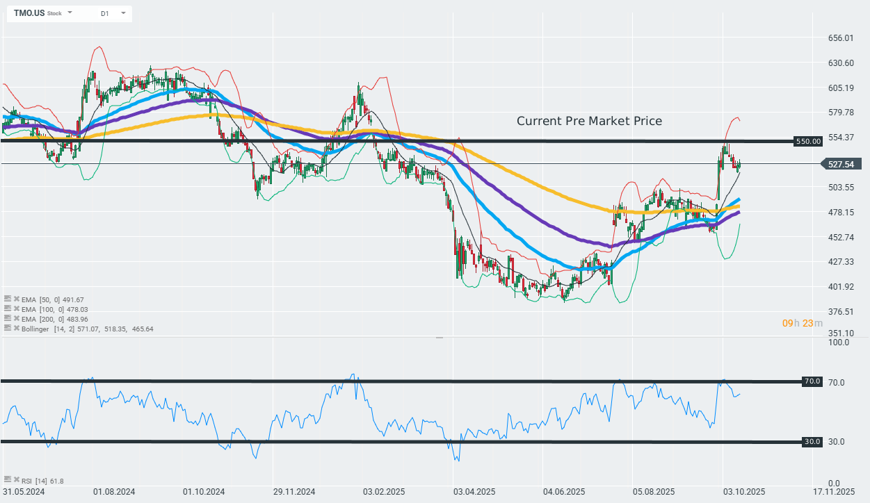 To kolejny przykład firmy spoza klasycznego sektora technologicznego, która ogłasza partnerstwo z OpenAI, chcąc w oczach inwestorów uchodzić za beneficjenta rewolucji AI, która napędza wyceny takich gigantów, jak Nvidia, Microsoft, czy Alphabet. Rynek wyraźnie nagradza wszelkie próby wdrażania rozwiązań opartych o sztuczną inteligencję: automatycznie pojawia się narracja o możliwości powtórzenia sukcesu spółek technologicznych, których akcje od miesięcy zyskują dzięki boomowi na AI. Stąd dzisiejsza pozytywna reakcja notowań TMO – inwestorzy widzą szansę, że do rozpędzonego pociągu technologii AI wskakują dziś kolejne sektory, starając się powtórzyć sukcesy firm, które już od jakiegoś czasu są kluczowymi beneficjentami tej transformacji.