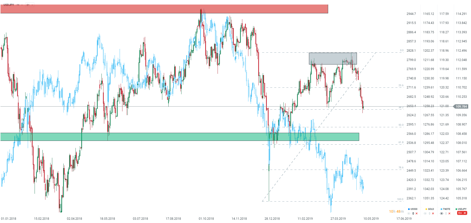 Rynki finansowe w zasadzie nie reagują na nowe słowa ze strony Trumpa. USDJPY przy ważnym wsparciu. Źródło: xStation5