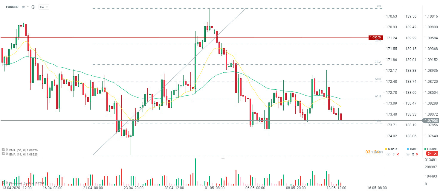 Jak widać dolar pozostaje bardzo mocny i cofa się poniżej poziomu 1,0800. Źródło: xStation5
