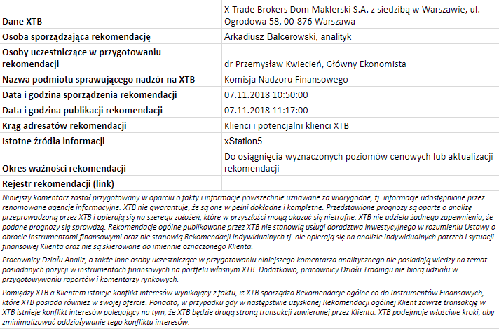 Ta publikacja handlowa jest informacyjna i edukacyjna. Nie jest rekomendacją inwestycyjną ani informacją rekomendującą lub sugerującą strategię inwestycyjną. W materiale nie sugerujemy żadnej strategii inwestycyjnej ani nie świadczymy usługi doradztwa inwestycyjnego. Materiał nie uwzględnia indywidualnej sytuacji finansowej, potrzeb i celów inwestycyjnych klienta. Nie jest też ofertą sprzedaży ani subskrypcji. Nie jest zaproszeniem do nabycia, reklamą ani promocją jakichkolwiek instrumentów finansowych. Publikację handlową przygotowaliśmy starannie i obiektywnie. Przedstawiamy stan faktyczny znany autorom w chwili tworzenia dokumentu. Nie umieszczamy w nim żadnych elementów oceniających. Informacje i badania oparte na historycznych danych lub wynikach oraz prognozy nie stanowią pewnego wskaźnika na przyszłość. Nie odpowiadamy za Twoje działania lub zaniechania, zwłaszcza za to, że zdecydujesz się nabyć lub zbyć instrumenty finansowe na podstawie informacji z tej publikacji handlowej. Nie odpowiadamy też za szkody, które mogą wynikać z bezpośredniego czy też pośredniego wykorzystania tych informacji. Inwestowanie jest ryzykowne. Inwestuj odpowiedzialnie.