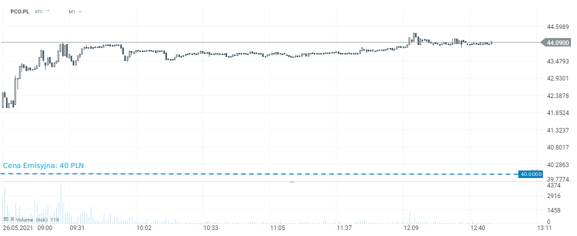 Akcje Pepco zyskują ok. 10% na debiucie. Źródło: xStation5