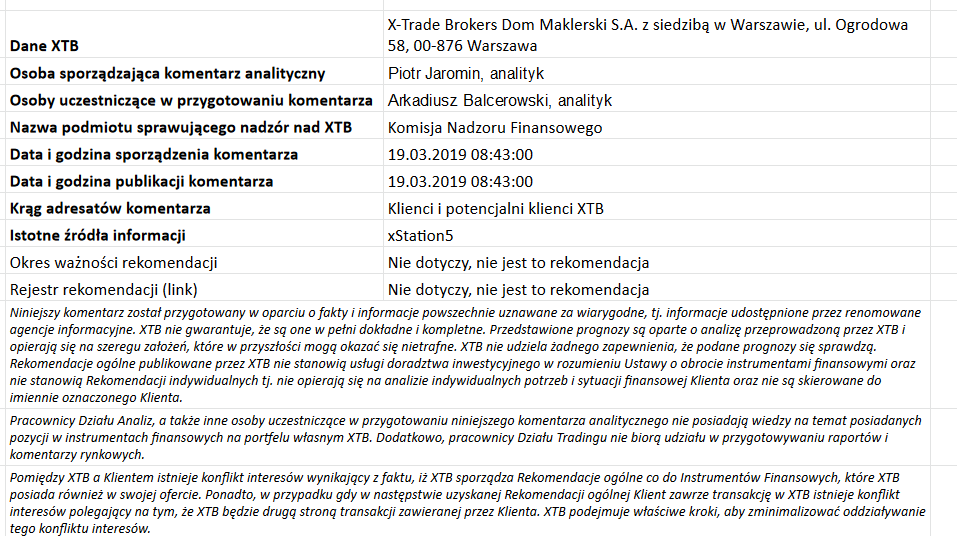 Ta publikacja handlowa jest informacyjna i edukacyjna. Nie jest rekomendacją inwestycyjną ani informacją rekomendującą lub sugerującą strategię inwestycyjną. W materiale nie sugerujemy żadnej strategii inwestycyjnej ani nie świadczymy usługi doradztwa inwestycyjnego. Materiał nie uwzględnia indywidualnej sytuacji finansowej, potrzeb i celów inwestycyjnych klienta. Nie jest też ofertą sprzedaży ani subskrypcji. Nie jest zaproszeniem do nabycia, reklamą ani promocją jakichkolwiek instrumentów finansowych. Publikację handlową przygotowaliśmy starannie i obiektywnie. Przedstawiamy stan faktyczny znany autorom w chwili tworzenia dokumentu. Nie umieszczamy w nim żadnych elementów oceniających. Informacje i badania oparte na historycznych danych lub wynikach oraz prognozy nie stanowią pewnego wskaźnika na przyszłość. Nie odpowiadamy za Twoje działania lub zaniechania, zwłaszcza za to, że zdecydujesz się nabyć lub zbyć instrumenty finansowe na podstawie informacji z tej publikacji handlowej. Nie odpowiadamy też za szkody, które mogą wynikać z bezpośredniego czy też pośredniego wykorzystania tych informacji. Inwestowanie jest ryzykowne. Inwestuj odpowiedzialnie.