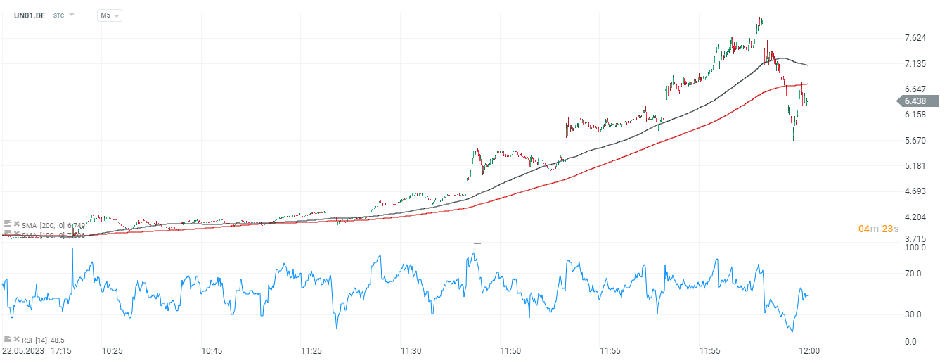 Transakcja spełniła regulacyjne wymogi, rynek rozpoczął wyprzedaż akcji spółki - mogła być katalizatorem do 'sprzedaży faktów' i zamknięcia pozycji po imponującym rajdzie cen akcji niemieckiego operatora gazu, który potężnie stracił w 2022 roku - zagrożony bankructwem. Sprzedana jednostka firmy, DMCC była liderem na rynku produkcji i dostaw olejów opałowych z niską domieszką siarki - produkty spełniały normy IMO 2020 na rynku kluczowego węzła żeglugowego ZEA, w Fujairah