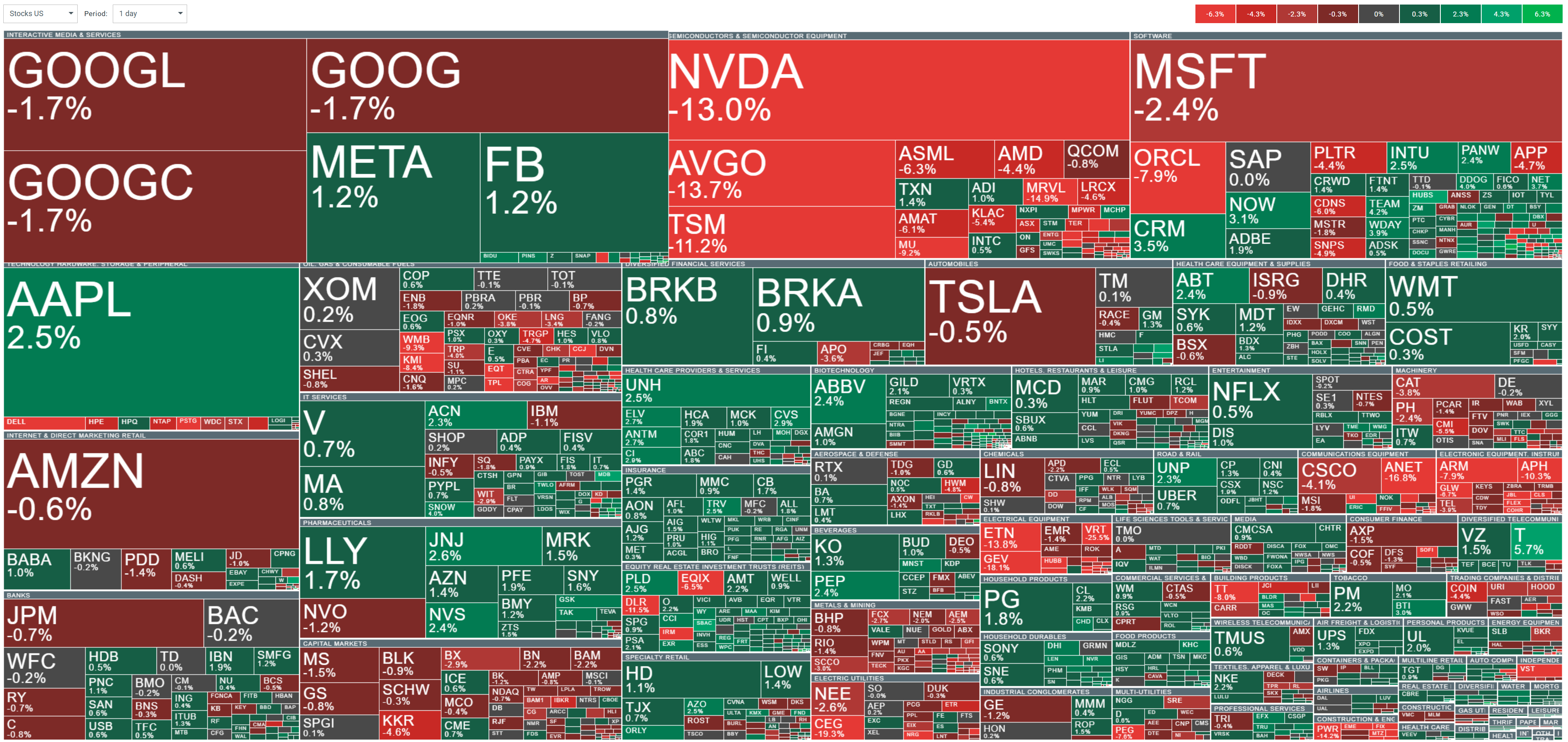 Indeks US100 spada o -2,34% do 21.395,48 pkt., prowadząc szeroki spadek na rynku, US500 traci -1,44% do 6.043,9 pkt. VIX wzrasta o +7,68% do 17,53