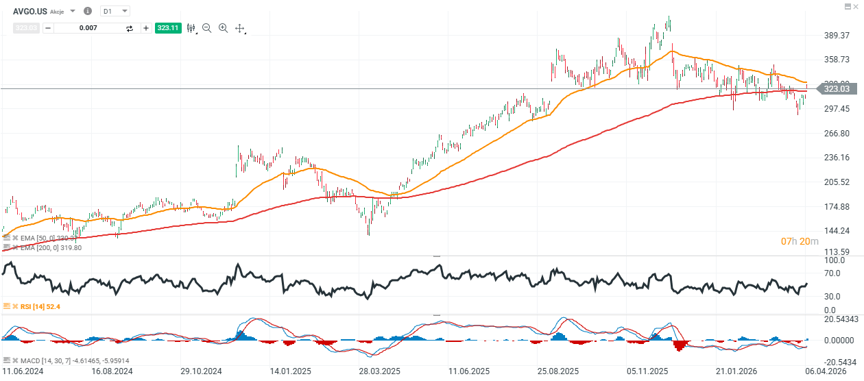 - Po słabszym początku roku i spadku kursu o ok. 7% YTD, nowe umowy bezpośrednio adresują obawy rynku dotyczące tempa wzrostu oraz zdolności Broadcomu do utrzymania udziału w boomie AI.