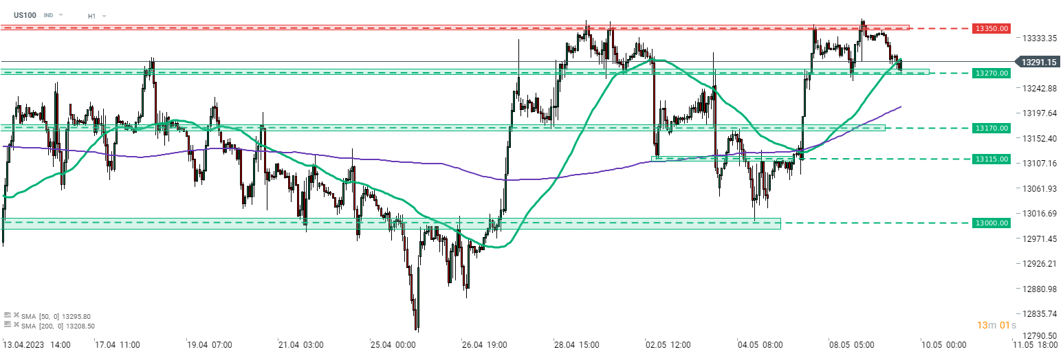 - US100 testuje strefę wsparcia 13.270 pkt.
