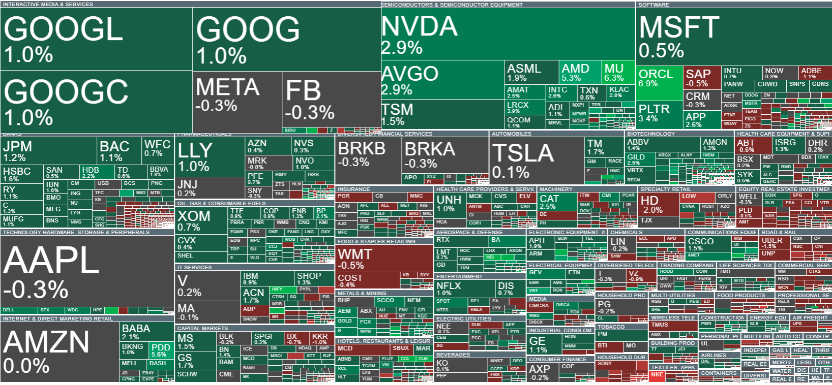 Otwarcie ostatniego piątku przed świętami przebiega w niezwykle pozytywnej atmosferze, a główne indeksy na Wall Street notują wyraźne wzrosty. S&P 500 oscyluje w okolicach 6800 punktów, zyskując około 0,7%, natomiast Nasdaq rośnie o 1%, co odzwierciedla stopniowy powrót apetytu na ryzyko po ostatnich wahaniach rynku. Wzrosty obejmują szeroki rynek, bez oznak paniki czy gwałtownych zwrotów, co sugeruje, że inwestorzy coraz bardziej akceptują nowy, „pofedowy” krajobraz stóp procentowych i inflacji oraz powoli przyzwyczajają się do obecnej zmienności rynku.