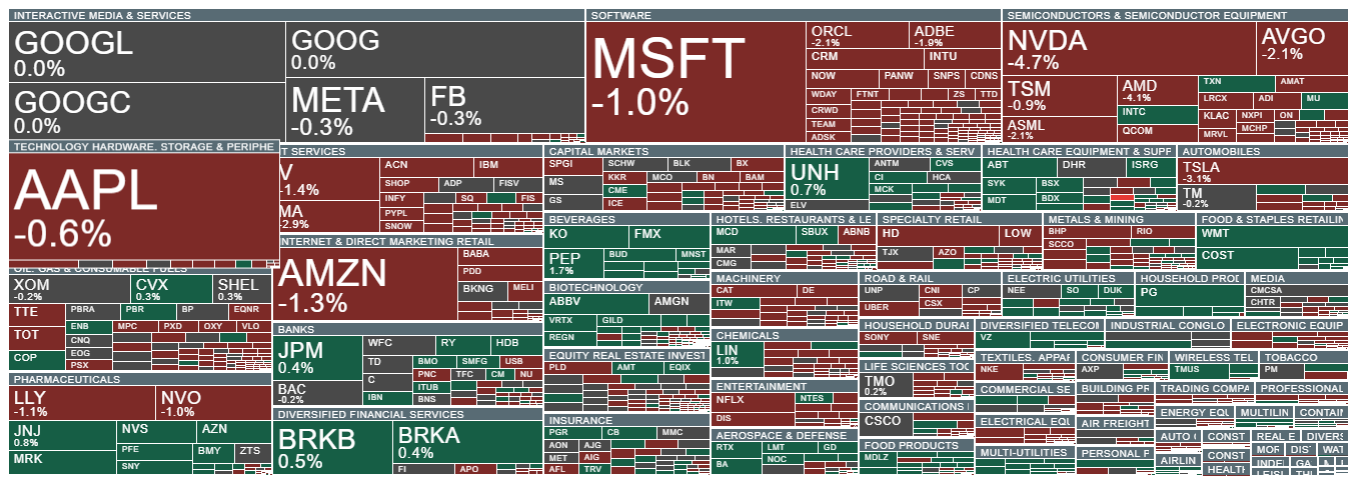 Indeksy na Wall Street rozpoczęły pierwszą sesję kasową nowego tygodnia niżej. S&P 500 otworzył się około 0,3% niżej, Dow Jones spadł o 0,2%, Nasdaq spadł o 0,5%, a Russell 2000 o małej kapitalizacji spadł o ponad 1,3%. Globalfoundries i Intel zyskują po tym jak Biały Dom wyraził poparcie dla programu wsparcia obejmującego krajowych producentów półprzewodników. Akcje dostawcy art. wystroju gospodarstwa domowego, Home Depot (HD.US) nieznacznie tracą po publikacji wyników fiskalnych za IV kwartał. Kalendarz ekonomiczny na dzisiejszą sesję w USA jest praktycznie pusty i rynki wydają się czekać na dwa kluczowe wydarzenia zaplanowane na jutro - protokół z ostatniego posiedzenia FOMC i wyniki Nvidia. Ekonomiczny doradca Białego Domu i była członkini Fed, Laul Brainard wskazała, że najbliższym czasie pojawi się więcej informacji związanych z trwającym programem rządowym 'Chips Act'.
