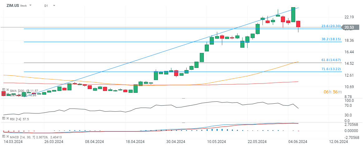 - Mocne spadki na akcjach ZIM Integrated Shipping (ZIM.US), 15% zwyżka na walorach Smartsheet (SMSH.US)