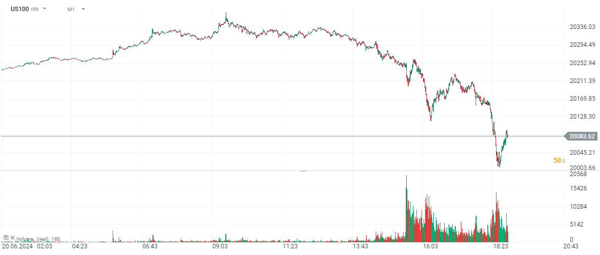 - Prezydent Putin podpisując porozumienie z Koreą Północną powiedział, że "Rosja myśli o możliwych zmianach w swojej doktrynie nuklearnej", ponieważ NATO przenosi się do Azji, stwarzając zagrożenie dla bezpieczeństwa kraju. Dziś możemy zaobserwować wyższy wolumen sprzedaży na kontrakcie US100.