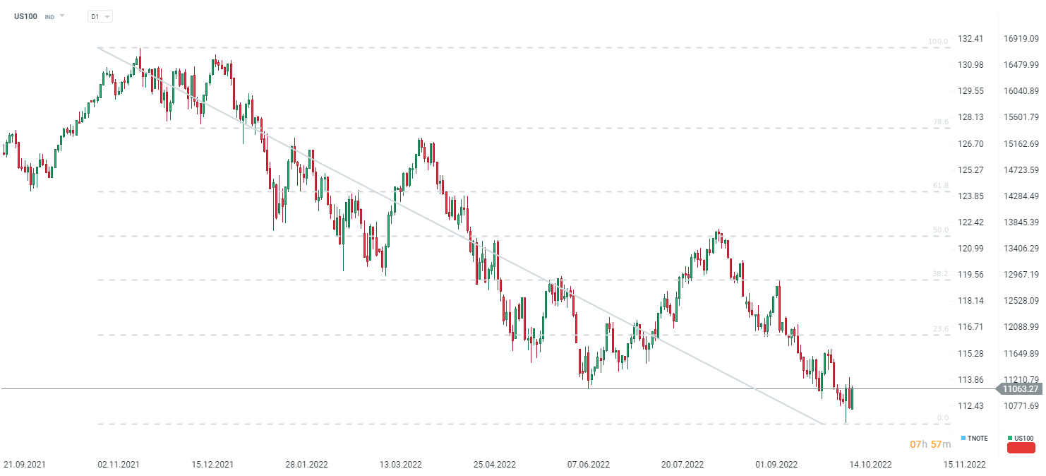 US100 zyskuje dzisiaj ponad 3%, odrabiając wszystki straty z piątku. Jednocześnie dzisiejsze odbicie nie zmienia na razie krótkoterminowego czy długoterminowego trendu. Źródło: xStation5