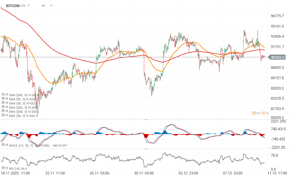 - Bitcoin spada dziś o ponad 2,5%, wymazując wzrost z 94 tys. USD do 90 tys. USD co tylko potwierdza wyraźną ucieczkę od bardziej ryzykownych aktywów.