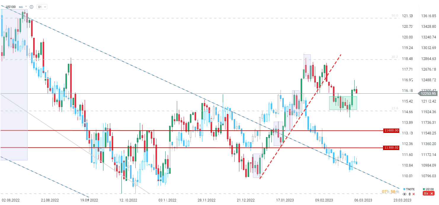 US100 traci w pierwszej reakcji po Fed. Źródło: xStation5