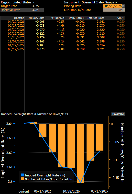 Przesunięcie w retoryce i danych makroekonomicznych doprowadziło do gwałtownej zmiany ścieżki stóp procentowych przez rynek. Jeszcze w styczniu 2026 roku rynki wyceniały stopę funduszy federalnych na koniec roku na poziomie około 3,0%, podczas gdy obecnie instrumenty OIS (Overnight Index Swaps) wskazują na efektywny poziom stóp procentowych na poziomie 3,6%, czyli oznacza to w zasadzie realny brak obniżek.