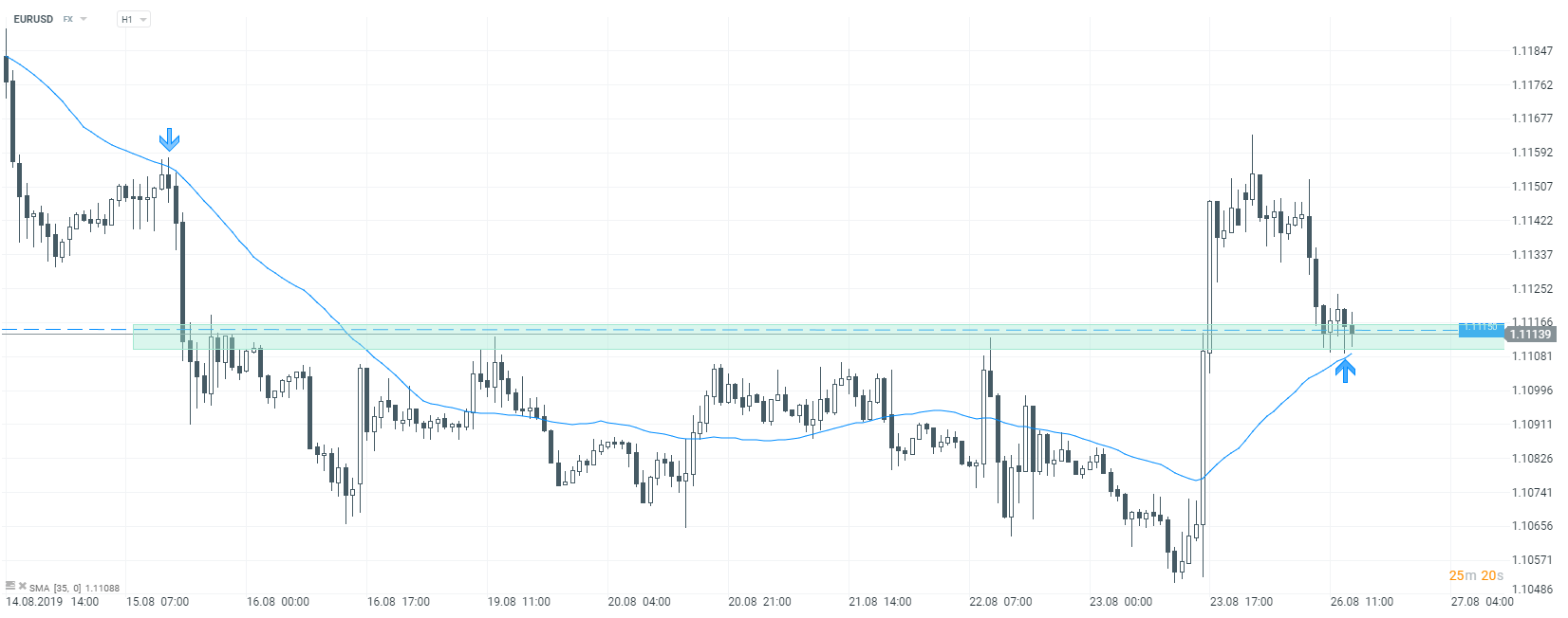 Kurs EURUSD nie reaguje na dane. Cena znajduje się w kluczowej strefie wsparcia przy 1,1115, odbicie się w tym miejscu, bądź pokonanie strefy, powinno doprowadzić do większego ruchu.