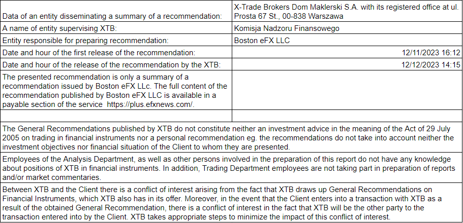 Barclays rekomenduje zajęcie długiej pozycji na parze z następującymi parametrami: