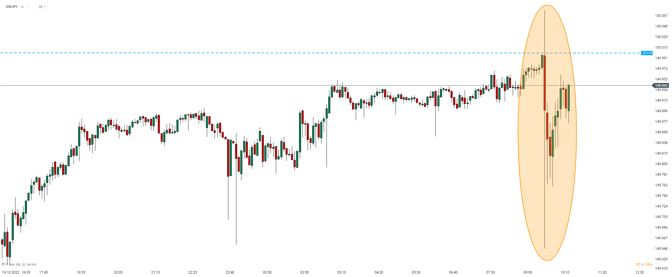 USDJPY zaliczył wzrost powyżej 150, ale tam doszło do realizacjii zysków i cofnięcia
