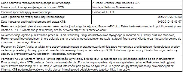 Bank rekomenduje zajęcie krótkiej pozycji oczekującej na parze z następującymi poziomami: