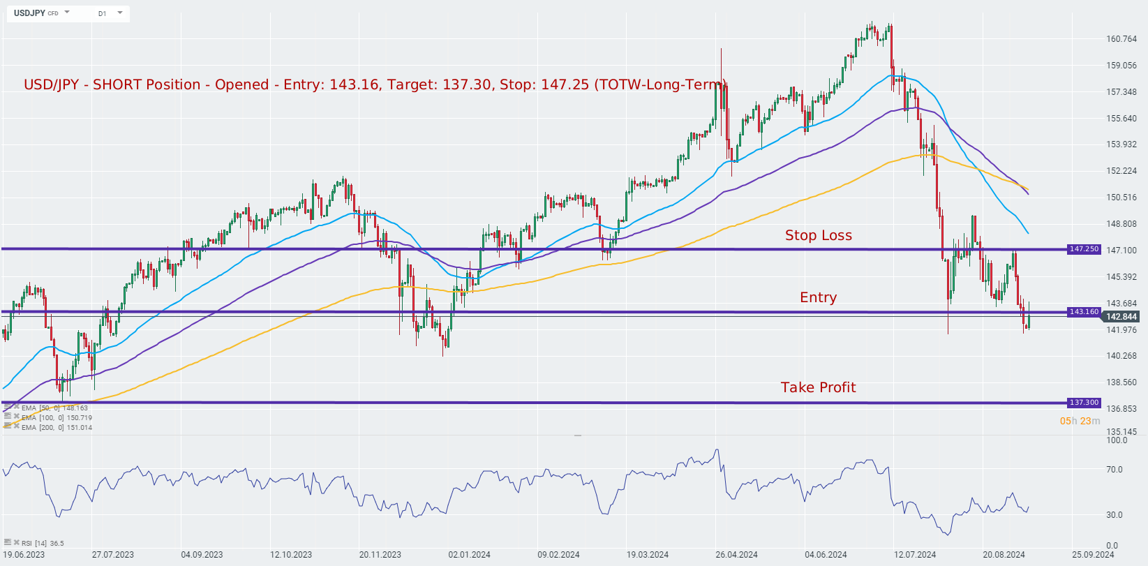 MUFG rekomenduje zajęcie krótkiej pozycji na USDJPY po 143,16, z celem na 137,30 i zleceniem stop loss na 147,25. Źródło: xStation5