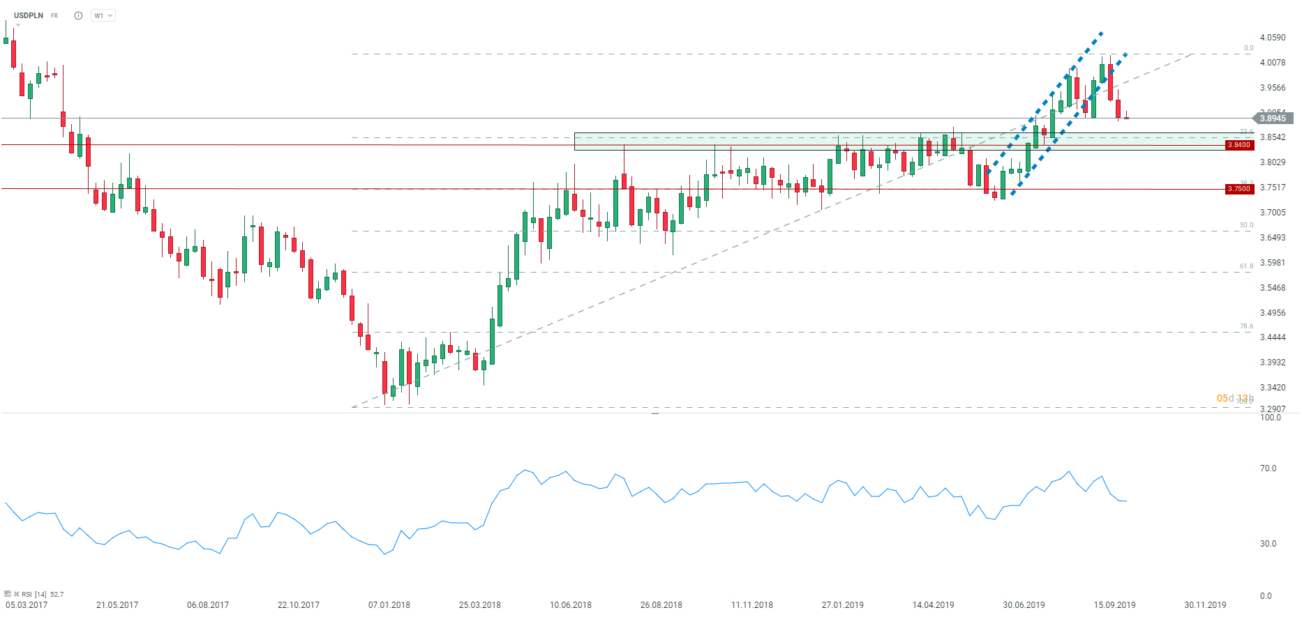 - USDPLN testuje lokalne minima z ostatnich tygodni, w zasięgu wsparcie w okolicach 3,8500