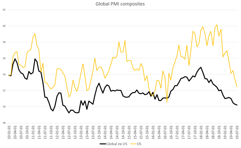 Od początku globalnej hossy z 2009 roku w zasadzie zawsze znalazłby się jakiś powód dla spadków cen akcji. Dlatego tematy takie jak Brexit, wojny handlowe czy konflikt z Iranem same w sobie nie wywołują bessy. Ostatecznie dla inwestorów liczy się to, czy spółki zarabiają, a to zależy od koniunktury gospodarczej – i tu zaczynają się schody. W ostatnich miesiącach globalna gospodarka konsekwentnie zwalnia.