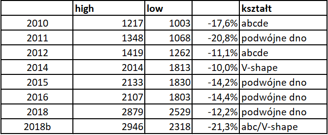 Historia dla niedźwiedzi, aczkolwiek ze względu na niewielką ilość obserwacji trudno tu mówić o prawidłowości statystycznej. Źródło: xStation5