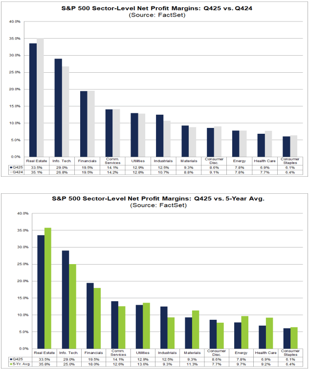 Jeśli ta wartość się utrzyma, będzie to najwyższa marża netto w historii danych FactSet (od 2009 r.), przebijając poprzedni rekord 13,1% z… poprzedniego kwartału. Innymi słowy: rentowność nie tylko się trzyma, ale jest wręcz na historycznych maksimach, co podważa część obaw o szybkie „zjadanie” zysków przez koszty.