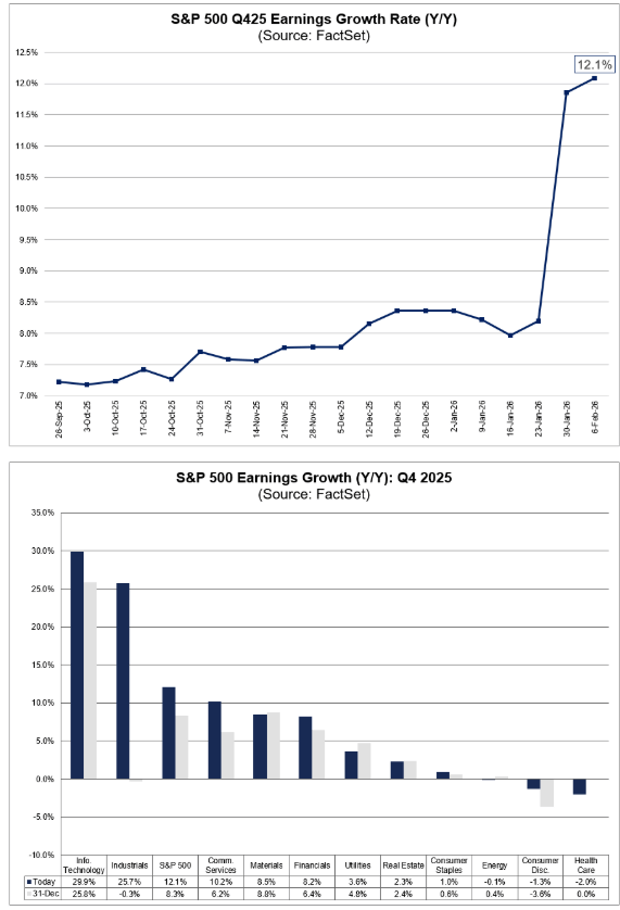 S&P 500 mimo spadków wraca do “klasyki hossy”: zyski rosną dwucyfrowo już piąty kwartał z rzędu (na razie). W ciągu jednego tygodnia łączony wzrost zysków na akcję (EPS) za 4Q podskoczył z 8,2% do 11,9%. Jeśli ten odczyt się utrzyma, dostaniemy 5. kolejny kwartał z dwucyfrową dynamiką zysków r/r - ostatni raz taki ciąg rynek widział w okresie 4Q 2017–4Q 2018