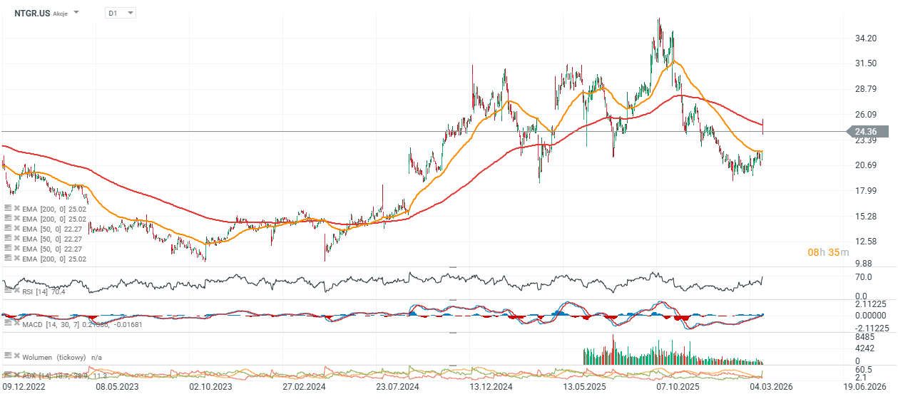 - Ralph Lauren (RL) zyskał 1,7% przed sesją, po podniesieniu rekomendacji przez Citi z neutralnie do kupuj. Bank wskazał na skuteczną strategię premiumizacji marki, która zaczyna przekładać się na wyraźnie lepsze wyniki operacyjne.