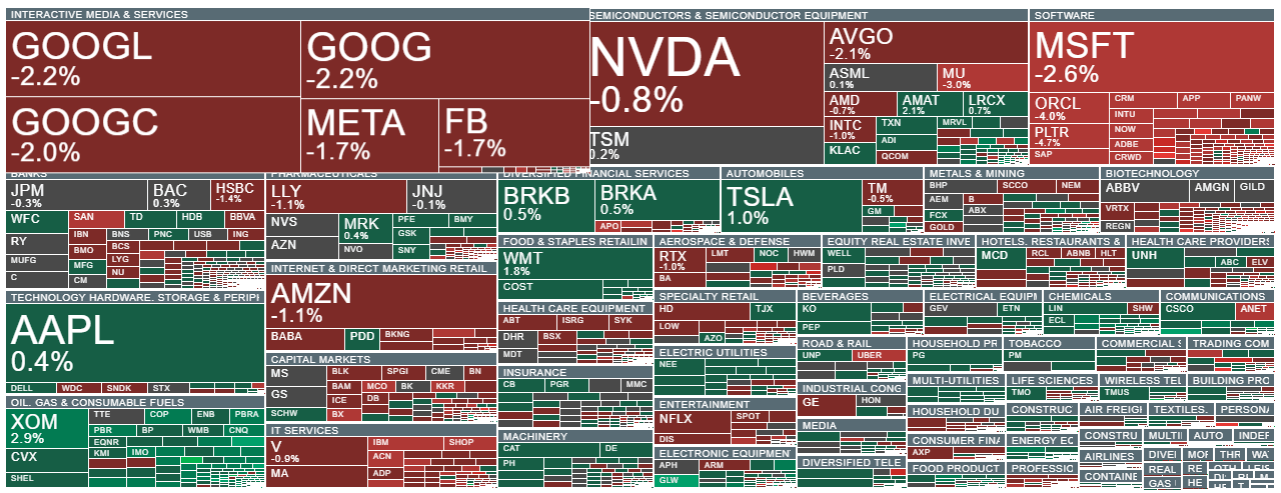 Sektor ropy notuje kolejną wzrostową sesję, Microsoft i inne spółki z sektora IT pogłębiają spadki. Źródło: xStation5