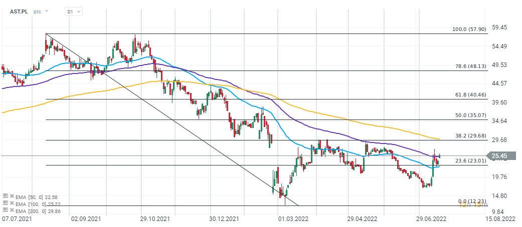 Wykres spółki Astarta Holding (AST.PL), interwał D1. Źródło: xStation 5