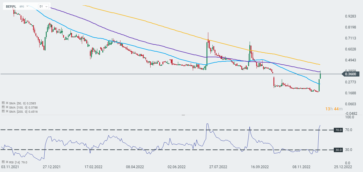 Walory polskiej spółki Biomass Energy Project (BEP.PL) zyskują dzisiaj ponad 16% i kontynuują pokaźne wzrosty z wczorajszej sesji. Wczoraj spółki poinformowała opinię publiczną o nawiązaniu partnerstwa strategicznego z chińskim funduszem Shanghai Mefund Asset Management. Jak możemy odczytać z komunikatu, podmioty będą współpracowały w sferach: