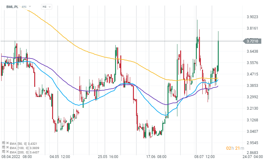 Wykres spółki Biomed Lublin (BML.PL), interwał H4. Byki silnie zareagowały na informacje o nowej umowie. Źródło: xStation 5