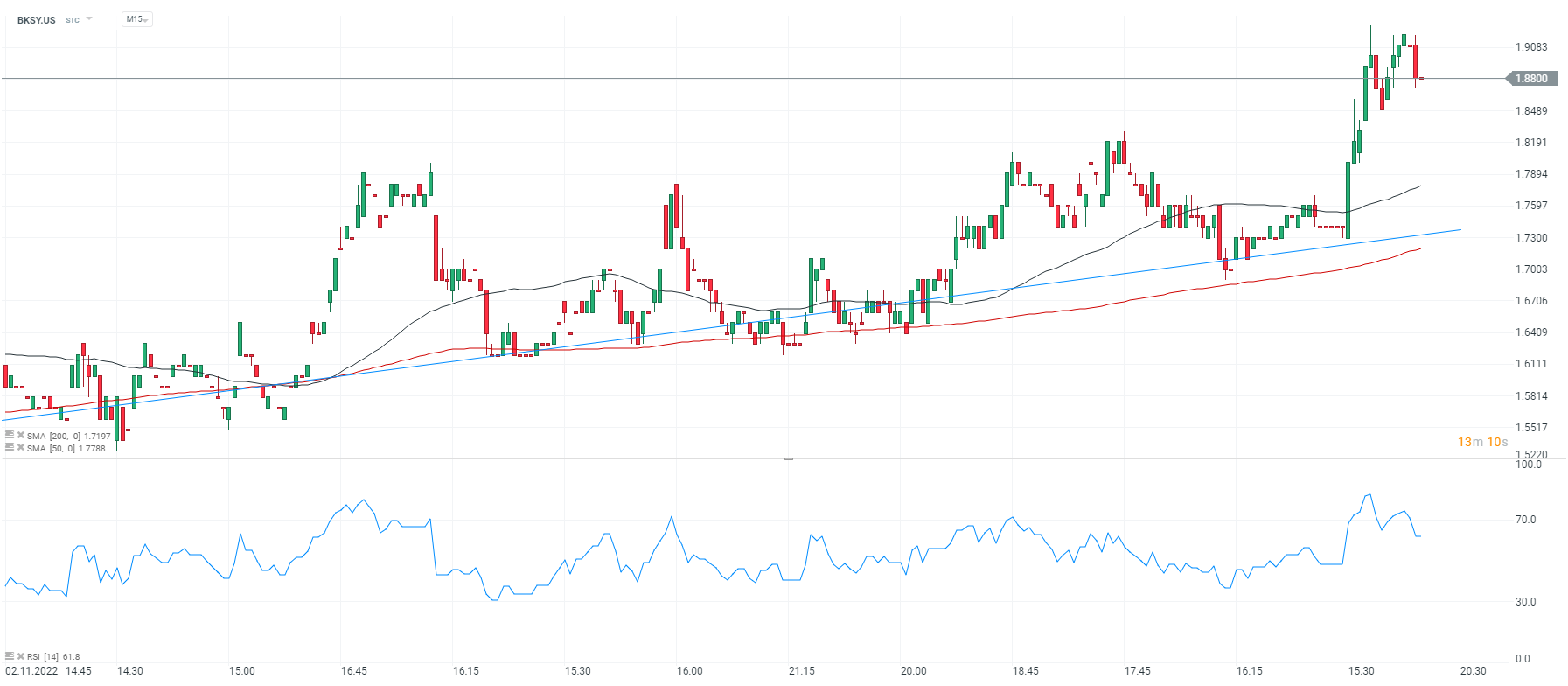 Akcje BlackSky (BKSY.US), interwał M15. Źródło: xStation5