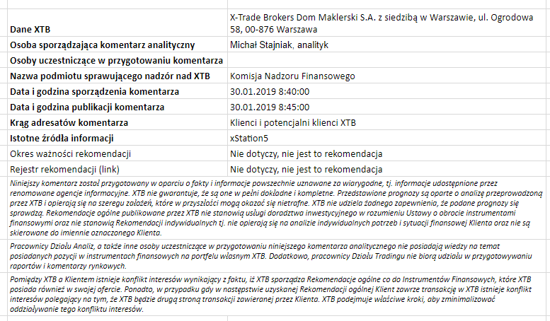 Ta publikacja handlowa jest informacyjna i edukacyjna. Nie jest rekomendacją inwestycyjną ani informacją rekomendującą lub sugerującą strategię inwestycyjną. W materiale nie sugerujemy żadnej strategii inwestycyjnej ani nie świadczymy usługi doradztwa inwestycyjnego. Materiał nie uwzględnia indywidualnej sytuacji finansowej, potrzeb i celów inwestycyjnych klienta. Nie jest też ofertą sprzedaży ani subskrypcji. Nie jest zaproszeniem do nabycia, reklamą ani promocją jakichkolwiek instrumentów finansowych. Publikację handlową przygotowaliśmy starannie i obiektywnie. Przedstawiamy stan faktyczny znany autorom w chwili tworzenia dokumentu. Nie umieszczamy w nim żadnych elementów oceniających. Informacje i badania oparte na historycznych danych lub wynikach oraz prognozy nie stanowią pewnego wskaźnika na przyszłość. Nie odpowiadamy za Twoje działania lub zaniechania, zwłaszcza za to, że zdecydujesz się nabyć lub zbyć instrumenty finansowe na podstawie informacji z tej publikacji handlowej. Nie odpowiadamy też za szkody, które mogą wynikać z bezpośredniego czy też pośredniego wykorzystania tych informacji. Inwestowanie jest ryzykowne. Inwestuj odpowiedzialnie.