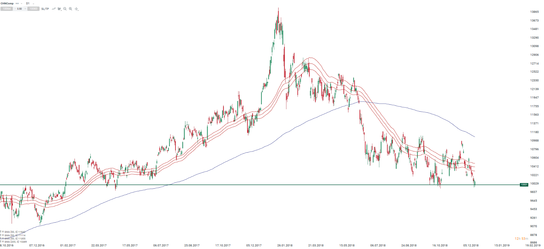 Poziom 10000 punktów powstrzymał już spadki pod koniec października i również dzisiaj zadziałał jako wsparcie. Temat wojen handlowych wciąż jest żywy i można się spodziewać, że z początkiem nowego roku, możemy poznać kolejne informacje z tego frontu. Źródło: xStation5.