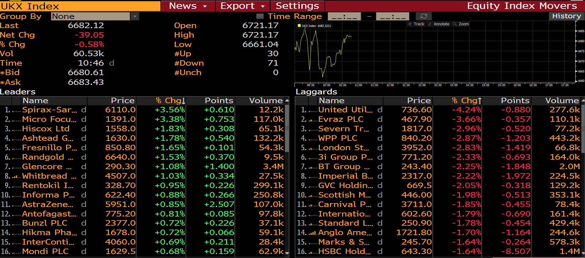 Zestawienie komponentów indeksu UK100. Źródło: Bloomberg.